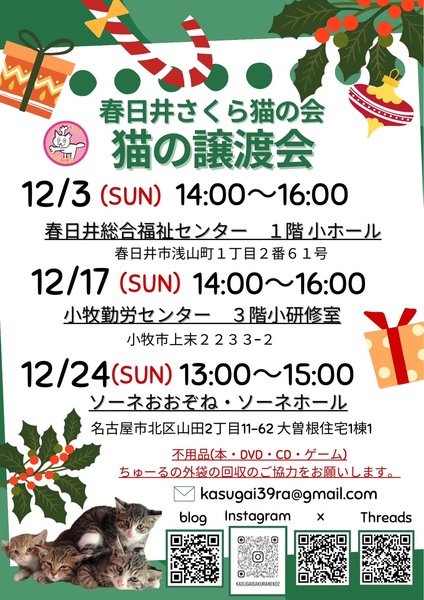 春日井さくら猫の会さんのイベント一覧