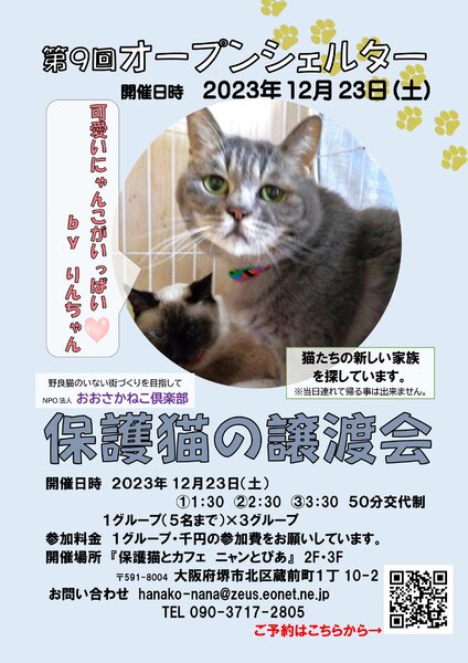 | 開催場所 | 堺市北区蔵前町1-10-2 ニャンとぴあ | ||