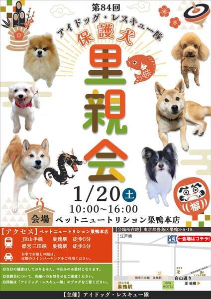 | イベント内容 | 第84回アイドッグ里親会in巣鴨のお知らせ ⭐️日時:1月20日(土) 10:00 ~ 16:00 ※入れ替え制 ⭐️会場:ペットニュートリション巣鴨本店 住所:東京都豊島区巣鴨3-5-18 ⭐️アクセス方法: JR山手線 巣鴨駅より徒歩5分 都営三田線 巣鴨駅より徒歩3分 お車でお越しの際は、近隣のコインパーキングをご利用ください。 ※マスクの着用は自己責任にてご判断お願いします。 ※室内は密になりやすいため、マスクの着用を推奨します。 ※犬をお連れの方は、オムツやマナーベルトの着用をお願い致します。 フリーで遊ばせることは出来ませんので、リードの着用をお願い致します。 〜皆様のお越しをお待ちしております〜 |