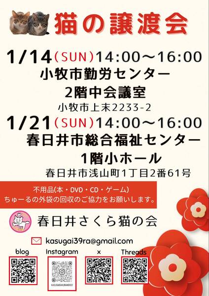 毎回大賑わいの春日井さくら猫の会の譲渡会に是非、お越しください?
