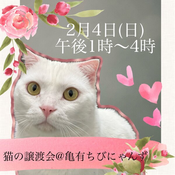 | イベント内容 | 外で生まれた子、遺棄された子、外で暮らしている猫達が皆あたたかな手を必要としています。 そんな猫達を保護して家庭の中で育てています。 その子の個性を良く理解し確実なご縁を繋ぐ為、多くの猫達を保護する事は出来ませんが大切な出会いを探しています。 お迎えする方の環境や生活スタイルに適した猫さんをご紹介できますので、どういう猫がいいのかと迷っている方へのご相談も受けています。 どうそお気軽にいらしてみて下さい。 ◆参加猫さんたちは皆ケージの中を暖かくしておりますので、寒さは大丈夫です。 |