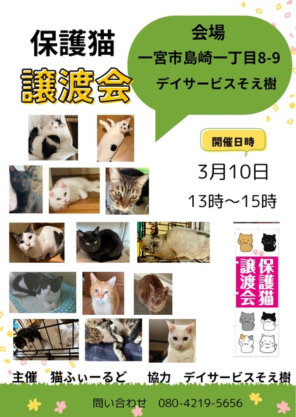 様々な事情で保護した猫たちの里親を探す。