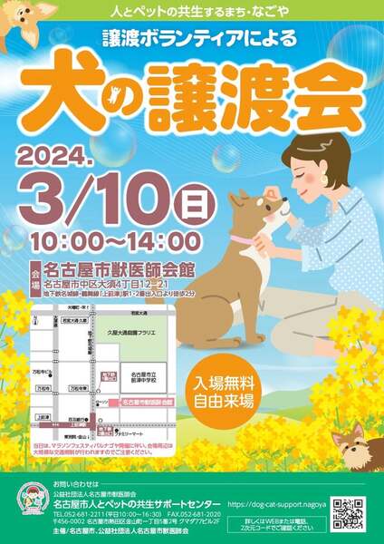| イベント内容 | 名古屋市、獣医師会、人とペットのサポートセンター主催の譲渡会です。 詳しくは下記にてご確認ください https://ameblo.jp/npo-famille-nagoya/entry-12841088380.html |
