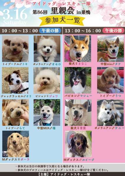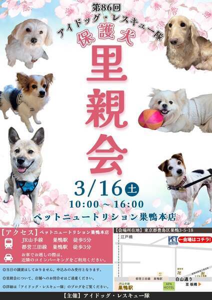 | イベント内容 | 第86回アイドッグ里親会in巣鴨のお知らせ ⭐️日時:3月16日(土) 10:00 ~ 16:00 ※入れ替え制 ⭐️会場:ペットニュートリション巣鴨本店 住所:東京都豊島区巣鴨3-5-18 ⭐️アクセス方法: JR山手線 巣鴨駅より徒歩5分 都営三田線 巣鴨駅より徒歩3分 ※お車でお越しの際は、近隣のコインパーキングをご利用ください。 ⚠️ 会場内は密になりやすいため、マスクの着用は自己責任にてご判断お願いします。 ⚠️犬をお連れの方は、オムツやマナーベルトの着用をお願い致します。 フリーで遊ばせることは出来ませんので、リードの着用をお願い致します。 〜皆様のお越しをお待ちしております〜 |