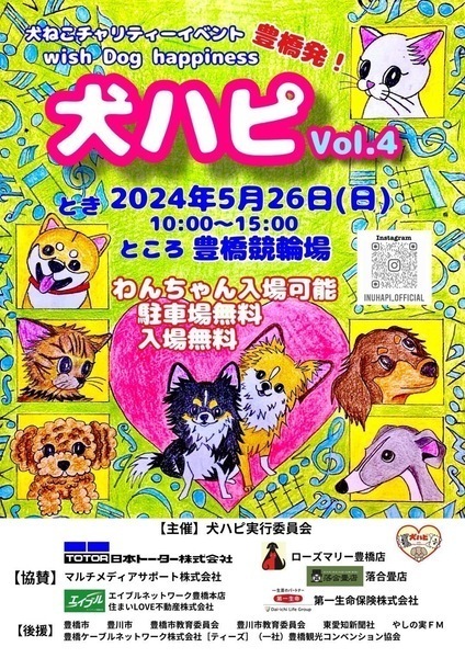 | イベント内容 | 愛知県の一般社団法人SORA小さな命を救う会です。 保護犬のお見合い会やマルシェでのチャリティイベントに参加致します。チャリティーイベントでの収益は、全て保護犬の医療など保護活動使わせていただきます。 お出かけに気持ちの良い季節です。 是非、ご家族みなさんで遊びにいらしてくださいね。 SORA公式ホームページ https://sora-chiisana.org/foster/ SORA公式活動メインブログ https://ameblo.jp/sora-chiisana-inochi/ SORAイベントブログ https://ameblo.jp/sora-charity-events/ |