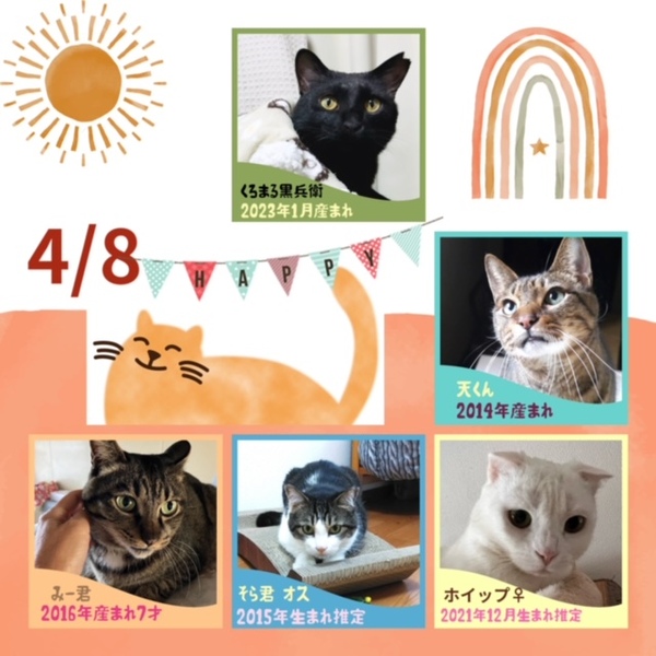 | イベント内容 | 生涯家族の一員としてたっぷり愛情を注いでくださるご家庭をお待ちしております。 猫の里親をさがす会 https://twitter.com/shosukereiko 手の消毒剤、検温機あり 体調のすぐれない方は見学をご遠慮下さい。 ご状況によりご希望に添えない場合もございますのでご了承下さい。 【以下の方には譲渡しておりません】 ・猫の飼育が許可されていない住居にお住まいの方 ・未成年者、友人同士&同棲でお住まいの方 ・乳児のいるご家庭、妊娠中の方 ・お引越し予定の方 ・60歳以上の方への子猫譲渡 ・脱走防止対策にご協力頂けない方 ・経済的に不安定な方(休職中、就職活動中、アルバイト、生活保護等) ・仔猫の場合は留守番の長いご家庭 ・住居の構造を聞かせていただく事があります。(階下への騒音など) ・犬猫を4頭以上飼育している方 他、飼育に適切でないと判断した場合や個体により条件が違う場合があります。 【当里親会は猫さんと里親様とのマッチングを大切にしています】 はじめて猫さんをお迎えする場合に適した猫さん、お留守番の長い里親さんに適した猫など、ご状況に合わせてアドバイスしています。 【ご負担頂く費用について】 譲渡の際に活動協力金を里親様にご負担頂く事により飼い主のいない猫の継続的治療や保護、新しいご家族の元へ送り出す事ができます。 ご理解とご協力をお願い致します。 ◆譲渡時には活動協力金(譲渡費用)のご負担がございます。 ★仔猫 1頭20.000 ★成猫 1頭25.000 ★成猫(マイクロチップ挿入済み)1頭30.000 |