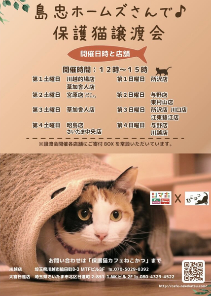 | イベント内容 | 保護猫カフェねこかつさん主催の保護猫譲渡会です☺︎ ねこかつさんや個人ボランティアさんの元で大切にお世話された、ちびっ子や大人猫ちゃんがたくさん参加しますʚ₍ᐞ·͈༝·͈ᐞ₎ɞ どなた様もご自由にご参加いただけます*♪ ❁譲渡には譲渡条件がございます ❁お申込みの際にはアンケートへのご記入がございます ❁当日に猫ちゃんを連れて帰ることはできません |