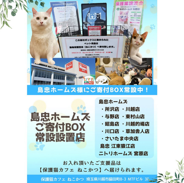 | イベント内容 | *保護猫讓渡会* 日時:*保護猫讓渡会* 日時:6/2(日) 12時~15時 場所:ホームズ所沢店さま センターからの引き出し、飼育崩壊や所有権放棄などで、生きる場所を失った猫たちが、最大限の医療にかけてピカピカになりました。 写真の猫の他にも甘えっこちゃんたちが、溢れる笑顔でお待ちしています。 ぜひご参加ください。 ***譲渡条件*** *完全室内でお願いします。 *逸走防止対策にご協力頂ける方 *写真付きの身分証をご提示頂ける方 *LINE若しくはメールでのやりとりが可能な方 *譲渡に関する覚え書きにご署名頂ける方 *初期医療費をご負担頂ける方 *その他の譲渡条件を、譲渡会場でお話させて頂ける方 *猫が生まれた年から20年後に、80歳を超えていない方 *お一人暮らしの方は、後見人さまのご同席が必要です。 |