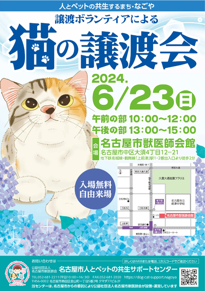 | イベント内容 | 渡ボランティアによる猫の譲渡会にファミーユも参加させていただきます! 今回は6匹参加します♫ 場所: 名古屋市獣医師会館 時間: 10:00~12:00 で参加します! 今回の譲渡会は入場無料、自由来場制です。 予約は不要です。お気軽にお越しください❣️ 詳しくはHPにてご確認ください↓ https://www.npo-famille.org/ |