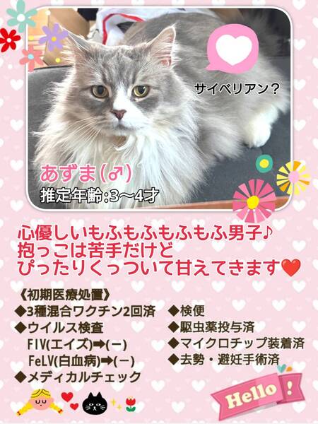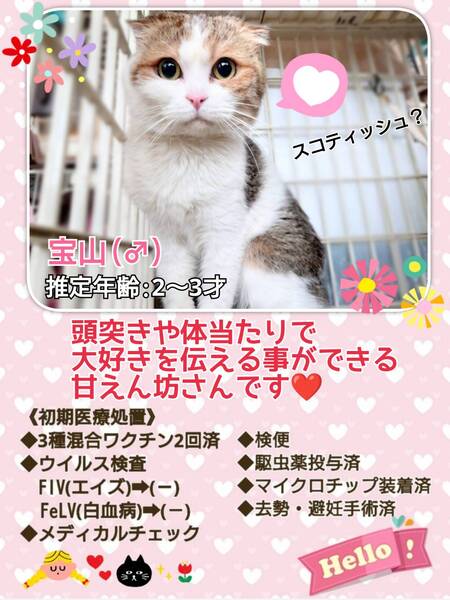 | イベント内容 | 【秘密結社ねこのひげ☆保護猫譲渡会】 6/9(日) 11:30~14:30 川越市高階公民館 講座室2号 (〒350-1142 埼玉県川越市藤間27-1) ⊰᯽⊱┈──╌❊╌──┈⊰᯽⊱ ご紹介できていない新入りさんたちも♪ 赤い糸をゆっくーーりと 手繰り寄せているいつメンたちも♪ 仔猫でワラワラになる前に! オトナの魅力を伝え隊♡として 一同笑顔いっぱいで譲渡会に挑みます♪ 未来のずっとのご家族さまと 愛し愛されな両想いになれますように♡ 是非会いにいらしてくださーい♪ ヾ(*´∀`)ノ もちろん見学だけでもWelcomeです♪ ご不明な点がございましたら インスタグラム@nnnkanto DMにてお問い合わせください☆ |