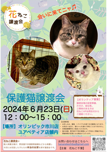 花ねこ譲渡会は、個人保護主さんが保護して大切にお世話した猫の「本当のお家」を探す譲渡会です。是非一度遊びに来てください。