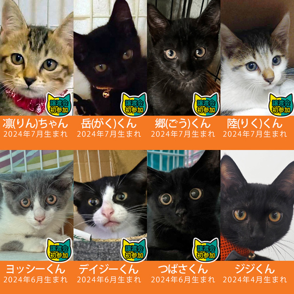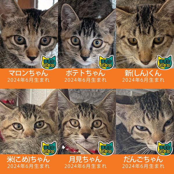 | イベント内容 | 譲渡会参加の子猫が決まりました️。 http://miyoshineko.sblo.jp/article/191051700.html 子猫26匹!デビュー子猫☆多いです! まだまだ暑いですが、会場はエアコンで涼しい屋内です。 カリヨンマルシェさん、野菜マルシェさん同時開催! ★☆子猫26匹!子猫まつり☆★ 9月15日(日)10時~15時 みよし市カリヨンハウス(みよし市三好丘2-2-1) 無料駐車場48台完備、近隣にコインP多数あり。 [最新猫情報はインスタをチェック] https://www.instagram.com/miyoshineko https://www.instagram.com/miyoshi_neko77 ■子猫の譲渡会は混み合います。 混雑時は入場制限を行い、しばらくお待ち頂く場合があります。 すべての方が入場、見学できるように調整いたします。 適正と条件を十分考慮させて頂き、トライアル先は抽選で決まります。 先着や申入れの順番ではございません。 当選されたご家庭のみに電話連絡を差し上げます。 抽選に外れた方に連絡を差し上げる事ができません。予めご了承ください。 体調不良等で不参加になる猫もございます。 【三好ネコの会ホームページ】 https://miyoshi-neko.jp 【Amazon欲しいものリストからフード支援お願いします】 https://miyoshi-neko.jp/fund |