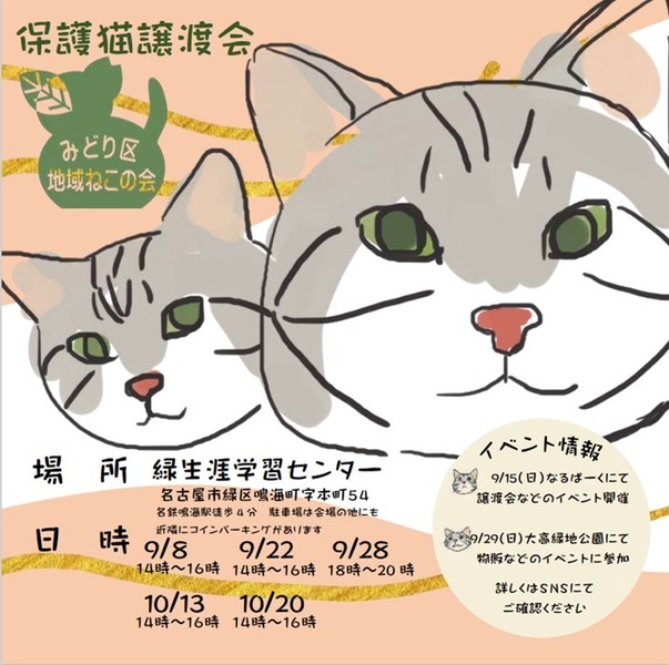 名古屋市緑区地域猫の会(みどりねこ)さんのイベント一覧