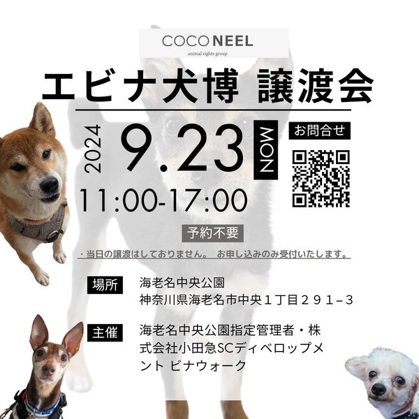 | イベント内容 | COCO NEEL譲渡会 IN エビナ犬博 2024.9.23(月振休) 11:00~17:00 【会場】海老名中央公園 神奈川県海老名市中央1丁目291−3 【入場料】無料/予約不要 【主催】海老名中央公園指定管理者・株式会社小田 急SCディベロップメント ビナウォーク イベント詳細➡https://www.instagram.com/p/C_nFNlhPgQ6/?utm_source=ig_web_copy_link ━━━━━━━━━━━━━━━ 会場にてお見合いをご希望の方は、譲渡条件をよくご確認のうえ、里親希望エントリーフォームより事前エントリーお願いします。 詳細はHP、ブログからご確認ください。 ━━━━━━━━━━━━━━━ ?COCO NEELオリジナル チャリティーTシャツを譲渡会特別価格にて販売します! ※売上は保護っ子達の医療費・活動費として大切にお預かりさせていただきます?♀️ ━━━━━━━━━━━━━━━ |