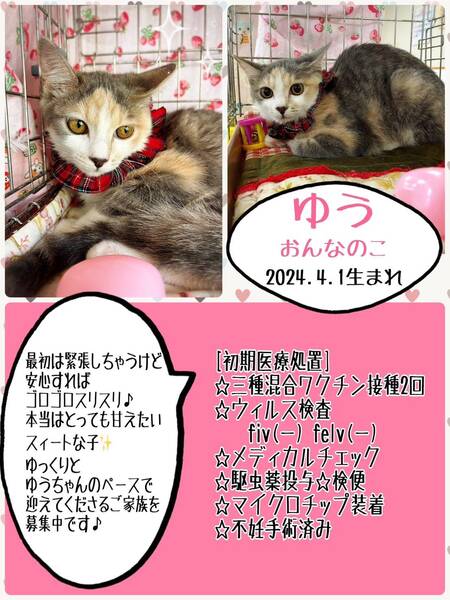 | イベント内容 | 【秘密結社ねこのひげ♡保護猫譲渡会】 9/15(日) 13:00~16:00 埼玉県鶴ヶ島市三ツ木新町1-1-13 カインズホーム鶴ヶ島店1F カルチャー教室 にて保護猫譲渡会を初開催します☆ 純血種多頭遺棄現場より またあらたにレスキューとなった仔や 今春~夏生まれの仔猫たちが 元気いっぱいで参加します♪ ずっとのご家族さまと 愛し愛されな 両想いになれますように♡ 家族にするなら保護猫だべ♪♪ 新しい家族と笑顔で暮らしたい♪ という方は是非会いにいらしてください♡ ご不明な点がございましたら Instagram @nnnkanto DMにてお問い合わせ下さい☆ |