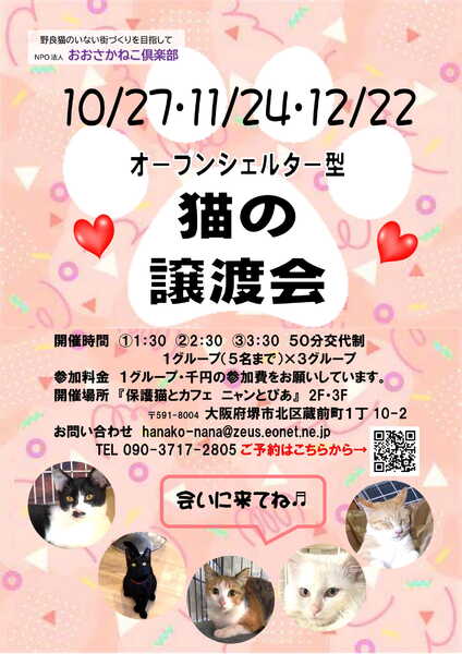 | 開催場所 | 堺市北区蔵前町1-10-2 ニャンとぴあ | ||