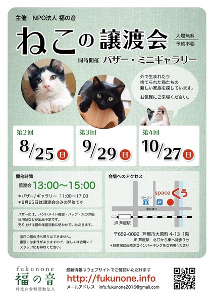 今年生まれの子猫が新しいお家を見つけるために、開催いたします。