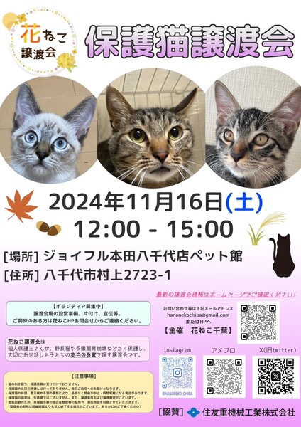 花ねこ譲渡会は、個人保護主さんが保護して大切にお世話した猫の「本当のお家」を探す譲渡会です。