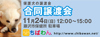 | イベント内容 | 合同譲渡会「藤沢いぬ親会&わんこグッズプチフリマ」に参加し「湘南いぬ親会」を開催いたします。 ずーっと一緒の家族との出会いを待つ保護いぬたちに会いに来てくださいね。 会場では犬服などの「わんこグッズフリマ」を開催します。 売上金は保護した犬猫の医療費など、ちばわん活動費として大切に使わせていただきます。 ※いぬ親会見学は予約等必要ありません。無料でどなたでも入場できます。 ※ネットによる募集も平行して行っているため、参加予定の犬が当日までに決定・不参加となる場合もあります。 ※イベントバナーに写真が掲載されている犬が参加するとは限りません。参加犬は本サイトに順次掲載されますのでそちらをご確認ください。 【日時】11月24日(日)12:00~15:00 雨天中止 (中止の際は当日7時までにhttps://chibawan.net/event_other/20241124-hujisawa-dogに掲載されます) 【場所】神奈川県藤沢市鵠沼2131-1 藤沢市保健所駐車場 【会場アクセス】 ●藤沢駅南口3番線乗り場よりバス3分、合同庁舎前下車 ●江ノ電「石上駅」徒歩6分 【お車で来場のご案内】 ※会場には駐車できませんので近隣の奥田公園駐車場等近隣パーキングをご利用ください。 【注意事項】 《ご来場される皆様へのお願い》 臆病な性格の犬や、子供さんを苦手とする犬も参加しています。いきなり触ったりせず、まずボランティアに声をかけてください。 お子様と一緒にご来場される際には、手を繋ぐなどして頂き、お子様だけで参加犬に近づくことのないようご注意ください。 会場に同伴される犬には、必ずリード(引き綱)をつけてください。 【当日の流れ】 (1)家族募集中のいぬとお会いになりたい方はどなたでもご参加いただくことができます。ちばわんボランティアは名札をつけておりますので、ご遠慮なくお声をかけて下さい。また、募集中のいぬのそばには預かりボランティアが控えておりますのでいぬの性格や生活習慣など、遠慮なくご質問ください。 (2)ご希望のいぬが決まったら、お申し込みアンケートにご記入の上、ボランティアにお渡し下さい(前日までにメールでアンケートを送信してお申し込みいただくこともできます。) ◆「いぬ」アンケート送信先:https://chibawan.net/contactform_dog (3)アンケート内容を拝見し、お話させていただきます。 (4)原則として3日以内にお返事の連絡をさせていただきます。 (5)ご縁が成立した場合には、後日、こちらからご自宅までいぬをお届けし、約1ヶ月のお試し生活に入っていただきます。お届けの際に、書面での譲渡契約書を交わします。 ※ワクチン・不妊手術代など保護犬にかかった費用は、家族になるいぬ親さんにもご負担をお願いしています。 ◆譲渡負担金についてはこちらをご覧ください →譲渡負担金についてhttps://chibawan.net/flowofadoptive/allocation 【その他】 当日に関するお問合せ:湘南いぬ親会 https://chibawan.net/inquiry_shounan ※いぬ親会当日はメールが見れません。また、お問い合わせの際は、必ず「具体的な件名」を入れて多数の迷惑メールと区別がつくようにお願いいたします。 ※どの子が参加するのか?のお問合せには返信できません。「参加予定の子たち」をご確認ください。 |