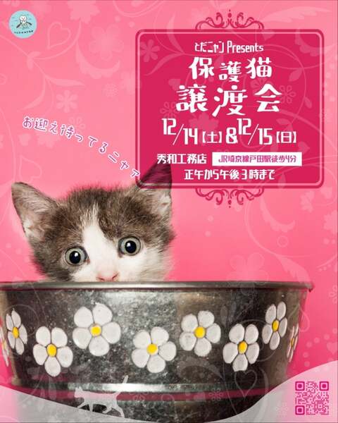 | イベント内容 | 今年第三段の子猫祭り。またまた可愛い2.5ヶ月~3ヶ月弱の子猫ちゃんと 大きい猫が2頭並ぶ予定です。 日程 12月14日(土) 12時00分~15時00分まで 12月15日(日) 12時00分~15時00分まで 場所 秀和工務店 JR埼京線 戸田駅 東口 徒歩4分 住所 〒335-0021 埼玉県戸田市新曽309−1 ヤオコーから徒歩90秒のところにあります。 室内開催のため雨天でも開催します。 *子猫の場合トライアルはありません。良くお考えの上お申し込み下さい。 *遠方へのお届けは希望しておりません。戸田から高速使わず1時間以内のところを希望しております。 *小さなお子様または乳幼児のいるご家族に子猫の譲渡はしておりません。 *高齢者のみのご家族には子猫の譲渡はしておりません。 譲渡会に出る子猫や成猫の様子などはブログをご覧になって下さい。 アメブロ https://ameblo.jp/sakutotaro203/ インスタ @toda_nyan いつもながらすみません。 募金のご協力をお願いします。 あと、フード、トイレシート トイレチップなど余り物が ありましたらご支援をお願い致します。 当会の譲渡会は予約制ではありません。 お気軽にお越しくださいませ。 よろしくお願いいたします。 |
