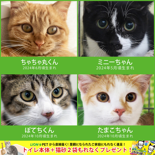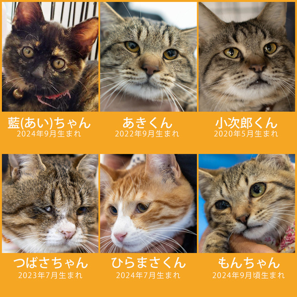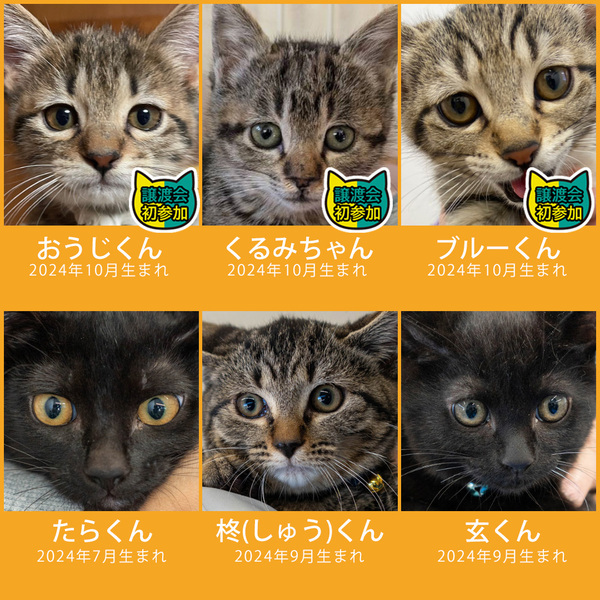 | イベント内容 | 譲渡会参加メンバーが決まりました。 30匹がパパママ家族探し!もちろん子猫いますよ! ちっちゃい猫も、でっかい猫も、抱っこして猫相性を確かめることができます。 我が子を見付けに来ませんか!? ■2025年1月19日(日)10時~15時 ■参加団体:NPO法人三好ネコの会、あいち東郷ねこの会、猫暖心他 ■みよし市カリヨンハウス(みよし市三好丘2-2-1) ※無料P48台、大型コインPあり 【ご来場前に】 ・混雑時は入場制限を行い、お待ち頂く場合があります。 ・すべての方が入場、見学できるように調整いたします。 ・猫は先着や申入れの順番ではございません。 ・適正と条件を十分考慮させて頂き、トライアル先は抽選で決まります。 ・当選されたご家庭のみに電話連絡を差し上げます。 ・体調不良等で不参加になる猫もございます。 ●子猫譲渡手数料 ワクチン1回接種/1匹20,000円・2匹38,000円 ワクチン2回接種/1匹30,000円・2匹58,000円 ●成猫/オス30,000円・メス35,000円 ※成猫は不妊去勢済、ワクチン済です。 ※個人参加猫、他団体猫は上記手数料ではございません。 ◎NPO法人三好ネコの会 https://miyoshi-neko.jp ◎保護猫一覧 https://miyoshi-neko.jp/foster_parents.html ◎インスタ本館 https://www.instagram.com/miyoshineko ◎インスタ別館 https://www.instagram.com/miyoshi_neko77 <もったいないを保護猫に> ご家庭で余っているフードを譲渡会場でお受け取りできます 買ったけど食べてくれない、飼い猫が亡くなって残ってしまったなど キャットフードドライブにご寄贈をお願いします。 |