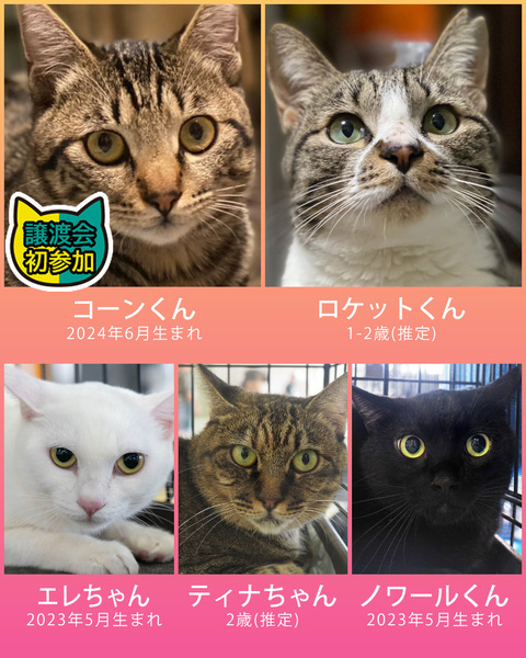 | イベント内容 | 今度の譲渡会は大中小26匹の参加が決まりました。 当日までにもう少し増えそうです♪ 2/2にゃーにゃーの日にチビ猫から大きい猫まで大集合! ゆっくり抱っこできて、おやつタイムやカワイイ寝顔も見れます!! ※ミニーちゃんはお休みとなりました。2/16に参加します。 <<猫会場はみよし市三好丘>> ■2月2日(日)10時~15時 ■みよし市カリヨンハウス(みよし市三好丘2-2-1) ■無料P48台、大型コインPあり 【参加団体】 NPO法人三好ネコの会 https://www.instagram.com/miyoshineko あいち東郷ねこの会 https://www.instagram.com/togoneko 猫暖心 https://www.instagram.com/nekodangonet 他 【ご来場前に】 ・猫は先着や申入れの順番ではございません。 ・適正と条件を十分考慮させて頂き、トライアル先は抽選で決まります。 ・当選されたご家庭のみに当日電話連絡を差し上げます。 ・体調不良等で不参加になる猫もございます。 ●子猫譲渡手数料 ワクチン1回接種/1匹20,000円・2匹38,000円 ワクチン2回接種/1匹30,000円・2匹58,000円 ●成猫/オス30,000円・メス35,000円 ※成猫は不妊去勢済、ワクチン済です。 ※個人参加猫、他団体猫は上記手数料ではございません。 主催:NPO法人三好ネコの会 https://miyoshi-neko.jp ◎保護猫一覧 https://miyoshi-neko.jp/foster_parents.html ◎インスタ本館 https://www.instagram.com/miyoshineko ◎インスタ別館 https://www.instagram.com/miyoshi_neko77 <もったいないを保護猫に> ご家庭で余っているフードを譲渡会場でお受け取りします。 買ったけど食べてくれない、飼い猫が亡くなって残ってしまったなど キャットフードドライブにご寄贈をお願いします。 |