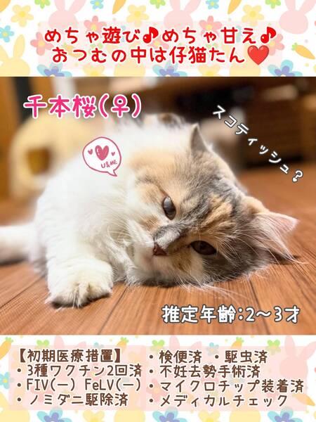 | イベント内容 | 【秘密結社ねこのひげ☆保護猫譲渡会】 2/9(日) 16:30~19:30 ナイター譲渡会を開催します♪ 川越市高階公民館 講座室2号 (〒350-1142 埼玉県川越市藤間27-1) ⊰᯽⊱┈──╌❊╌──┈⊰᯽⊱ まんまるモフモフな仔猫たちや 脳内は永遠に仔猫だにゃー♪ なヤング猫が10数頭参加します☆ ご紹介できていない新入りさんたちも♪ 赤い糸をゆっくーーりと 手繰り寄せているいつメンたちも♪ 一同笑顔いっぱいで譲渡会に挑みます♪ 未来のずっとのご家族さまと 愛し愛されな両想いになれますように♡ 是非会いにいらしてくださーい♪ ヾ(*´∀`)ノ もちろん見学だけでもWelcomeです♪ ご不明な点がございましたら インスタグラム@nnnkanto DMにてお問い合わせください☆ |