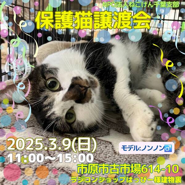 | イベント内容 | 子猫からシニア猫まで、沢山の保護猫達が譲渡会に参加します♪ ブログにて、譲渡会に参加する猫さん達を紹介しております。 ねこけん千葉支部ブログ→ https://ameblo.jp/nekoken-chiba/ 通常スタイルの譲渡会と致しますが、コロナ/インフルエンザ対策として ・会場内ではマスクのご着用と入退室の際は消毒をお願い致します。 ・ご予約無しでお越しいただけますが、混雑時は整理券を配らせていただきます。 ご協力の程よろしくお願い致します。 また、譲渡会会場では、千葉県内にお住いの預かりボランティアさん及びお世話ボランティアさんを募集しています。 ご希望の方は、大変お手数をおかけしますが、譲渡会までお越しください。 ※ご都合がつかない場合は、お問い合わせ先までご相談ください。 [日時] 3月9日(日)11:00~15:00 [会場] 千葉県市原市古市場614-10 ※屋内での開催となり雨天決行です。 ※抱っこもOK! ※猫ちゃんの負担も考え、ご来場は時間内にお願い致します。 ※特にご予約などは必要ございませんのでご家族皆様でぜひお越し下さい。 ※駐車場あり。 [交通] 交通機関を利用してお越しの方 JR内房線 浜野駅より徒歩13分 浜野駅は、東京駅から京葉線→内房線でおよそ50分の距離!! お車でお越しの方 京葉道路蘇我インターより車で10分 ※駐車場はラジコンショップハッピー様裏手にございます駐車場をご利用ください [譲渡ご希望の方へのお願い] 誠に恐れ入りますが下記に当てはまります方への譲渡は不可となりますので予めご了承下さい。 ①学生さん、未成年の方、安定収入のない方 ②ペットを飼う事を許されていない住宅にお住まいの方 ③身体的、精神的疾病で治療中の方 ※60歳以上の方は別途条件がございますのでご相談下さい。 [譲渡の流れ] お申込み→審査→後日お届け→トライアル→正式譲渡 ※当日のお連れ帰りは出来ませんので予めご了承ください。 ※仮譲渡時にご希望の猫ちゃんにかかった医療費(ウイルス検査・ワクチン・駆虫・不妊去勢手術等)をご負担願います。 しかし、正式譲渡に至らなかった場合は医療費を全額返済致します。 [主催] 動物愛護団体 NPO法人ねこけん 千葉支部 [ブログ] https://ameblo.jp/nekoken-chiba/ [参加動物] 成猫・子猫 [お問い合わせ] ご不明な点、ご質問等ございましたら下記までお問い合わせください。 chiba.info@nekoken.jp |