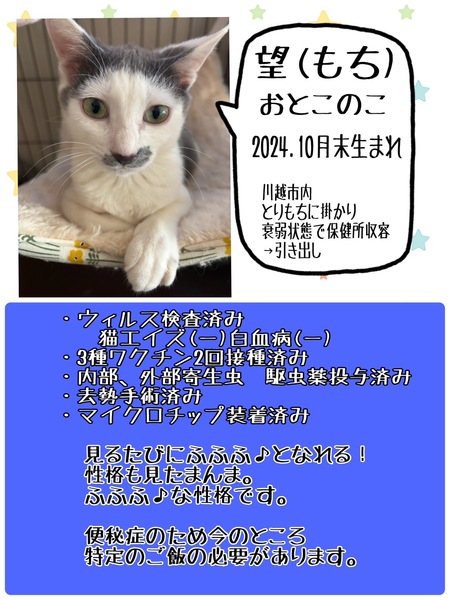 | イベント内容 | 【秘密結社ねこのひげ♡保護猫譲渡会】 3/16(日) 13:00~16:00 埼玉県鶴ヶ島市三ツ木新町1-1-13 カインズ鶴ヶ島店1F カルチャー教室 にて保護猫譲渡会を開催します♪ 昨年秋生まれの幼猫たちや 脳内はまだまだ仔猫やでー!なオトナ猫が 元気いっぱいで参加します♪ ずっとのご家族さまと 愛し愛されな 両想いになれますように♡ 家族にするなら保護猫だべ♪♪ 新しい家族と笑顔で暮らしたい♪ という方は是非会いにいらしてください♡ ご不明な点がございましたら Instagram @nnnkanto DMにてお問い合わせ下さい☆ |
