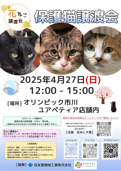 花ねこ譲渡会は、個人保護主さんが保護して大切にお世話した猫の「本当のお家」を探す譲渡会です。是非一度遊びに来てください。