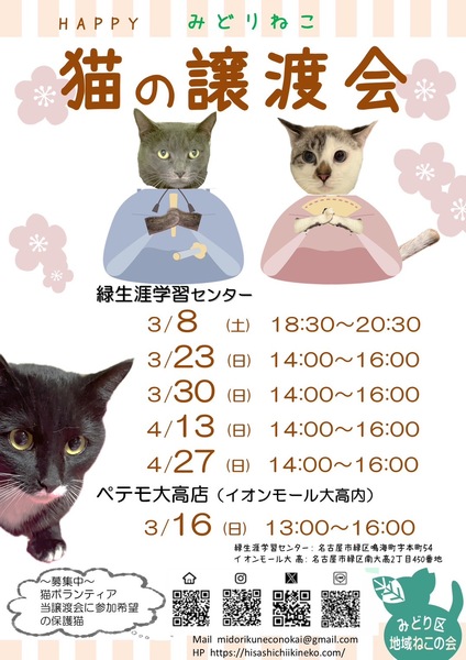 名古屋市緑区地域猫の会(みどりねこ)さんのイベント一覧