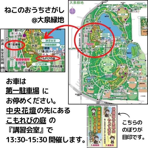 | イベント内容 | 第39回ねこのおうちさがし@大泉緑地 日時 : 2025年3月23日(日) 時間 : 13:30〜15:30 場所 : 大泉緑地 講習会室 〒591-8022 大阪府堺市北区金岡町128 地下鉄御堂筋線「新金岡」2番出口より東へ1km ◎詳しいアクセスについては大泉緑地ホームページにてご確認ください ○公園内に有料の駐車場がございます。 (会場に一番近いのは第1駐車場です。) ○会場へのお問い合わせは固くお断りします。 (場所をご提供くださるだけなので、譲渡会の内容や参加猫についてはご存知ありません。) ○譲渡には完全室内飼育、同意書への署名・捺印などの条件、医療費の一部負担があります。 ○保護猫のお届けは後日となります。 譲渡会当日に連れて帰ることはできません。 ○参加予定の猫は、里親会の前に里親さまが決定する場合や、体調により不参加となる場合があります。 主催︰この子のあした 運営︰ねこのおうちさがし和泉支部 協力︰大泉緑地管理事務所 お問い合わせはメールまたはLINEにてお願いします izumineko22☆yahoo.co.jp ☆を@にしてください https://lin.ee/h6E9Is5 LINEの方は↑のURLをクリックしてください ※気になる子がいて、スケジュールが合わず来場が難しい場合は、お問い合わせいただけましたら、アンケートにお答えいただいた後、保護主にお繋ぎいたします。 |