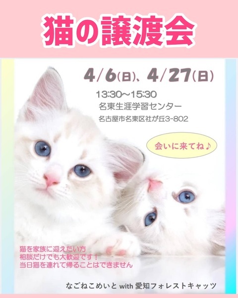 名東生涯学習センターにて可愛い子ちゃん達の譲渡会を開催します。