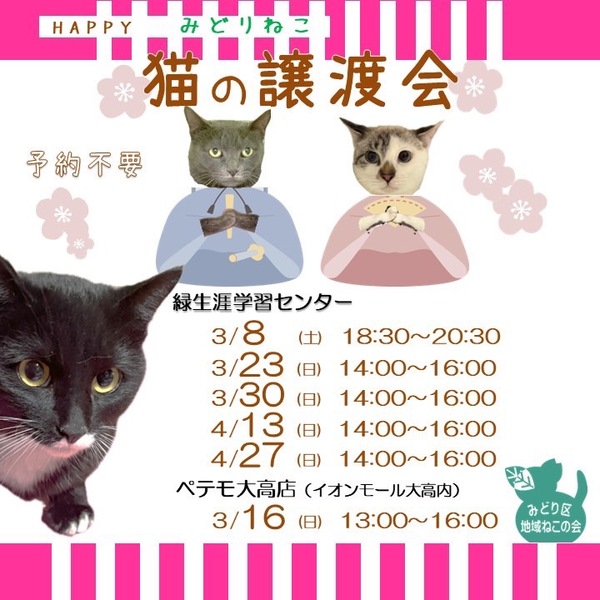 名古屋市緑区地域猫の会(みどりねこ)さんのイベント一覧
