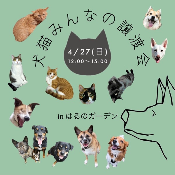 | イベント内容 | 【第9回犬猫みんなの譲渡会】 4/27(日) 12:00〜15:00 《開催場所場所》はるのガーデン 別館ドッグカフェ内 〒284-0008 千葉県四街道市鹿放ヶ丘282-12 雨天決行(屋内開催) 事前予約なし・無料 ▪️駐車場あり 車椅子用の優先駐車場をご希望の方は事前にご連絡をお願いします。 *ワンちゃんをお連れの際、室内マナーパンツの着用をお願いします。 〈お問い合わせ〉 knome.3rd@gmail.com 《公式サイト》 https://k-nome.amebaownd.com/ 《Instagram》 https://www.instagram.com/kuromarunome/ 事前予約は不要です。 気になる子がいましたらHPから事前に預かりさんにお問い合わせしておくとスムーズです。 今回も出会いを待ってるたくさんの犬猫が参加予定です。(写真は過去の参加犬猫たちです。) 今は保護犬猫をお迎えできない方でも、参加犬猫たちと触れ合いに来るだけでもOK! チャリティーグッズやフリマなど見に来てくださる、応援団も大歓迎です。 たくさんのご縁が繋がるように、預かりボランティア、運営スタッフ一同全力で頑張りますので皆さま是非お越しください! お友だちやお知り合いにもお知らせしてもらえると嬉しいです?? 可愛い犬猫たちとお待ちしております。 |