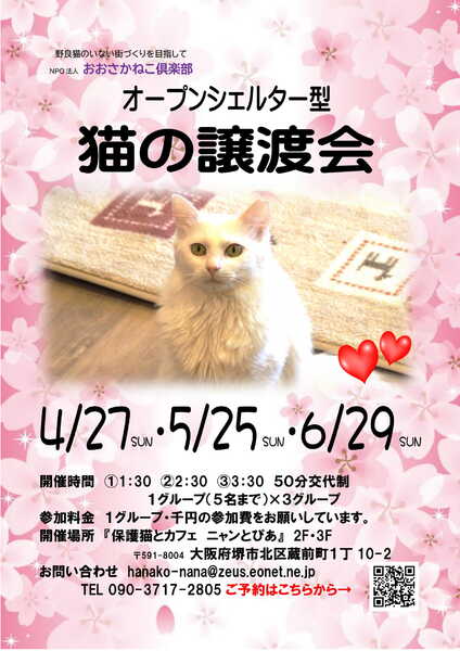 | 開催場所 | 堺市北区蔵前町1-10-2 ニャンとぴあ | ||