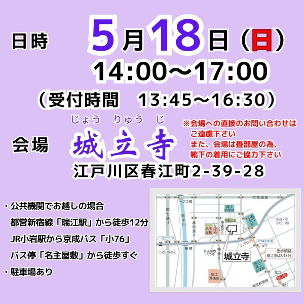 | 開催場所 | 江戸川区春江町2丁目39-28 城立寺 | ||