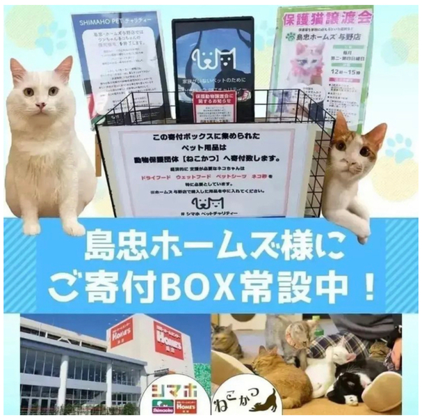 | イベント内容 | 保護猫カフェねこかつさん主催の保護猫譲渡会です✿. ちびっ子から大人まで大切にお世話をされた可愛い子たちが参加します みんなずっとのおうちを募集中です★ 保護猫シェルターボニズハウスさんの可愛い猫ちゃんグッズのチャリティー販売も開催されます♡ ※ご予約は不要でご自由にご参加いただきだけます ※参加費無料 ※譲渡には譲渡条件がございます ※お申込みの際にアンケートへのご記入がございます ※当日に猫ちゃんを連れて帰ることはできません ※お車でお越しの方はニトリホームズ様の駐車場をご利用ください(無料) ❁島忠様ではシマホペットチャリティーとしてご寄付BOXが常設されております。 皆様からの優しさお気持ちに感謝致します。 【お車でお越しのお客様へ】 カーナビ検索でご来店される方は、「埼玉県所沢市青葉台1333」でお調べください。 【最寄り駅からの交通アクセス】 ■小手指駅北口より徒歩約12分 ■小手指駅北口:所沢市コミュニティバス ところバス(市内循環バス)西路線 新所沢・三ヶ島コース:小手指公園北下車 |