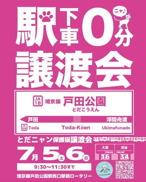 | イベント内容 | 7月譲渡会お知らせです。 【日程】 7月5日(土) 9:30~11:30まで 7月6日(日) 9:30~11:30まで 【場所】 JR埼京線 戸田公園駅コンコース 戸田公園駅改札出て右側または左側で開催します。 可愛い子猫が4頭並びます。 暑さ対策をしっかりと行って開催します。 開催時間いつもよりか短めの2時間です。お早めにお越しください。 屋根がありますので雨天でも開催します。 毎年のことながらこの時期子猫が多く入ってきます。 医療費、飼養費共に出費が多い時期でもあります。 ○募金のご協力をお願いいたします。 ご支援のお願い ○フード、トイレチップ、トイレシートのご支援をお願いいたします。 フードは賞味期限以内であれば銘柄問わずなんでもOKカリカリ、ウェット、おやつ助かります。 トイレシートはレギュラーワイド共に枚数多く入っている薄地のものが欲しいです。 当会の譲渡会は予約制ではありません。 ちら見OK です。 無断撮影禁止です。少し離れたところで全体を撮るのも禁止。 子猫のお写真を撮りたい時はスタッフにお声かけ下さい。 展示する猫の様子などはブログをご覧ください。 アメブロ↓ https://ameblo.jp/sakutotaro203 インスタ↓ @kiyasa_rin 子猫なので基本トライアルはありません。良くお考えの上お申込み下さい。 よろしくお願いいたします。 |