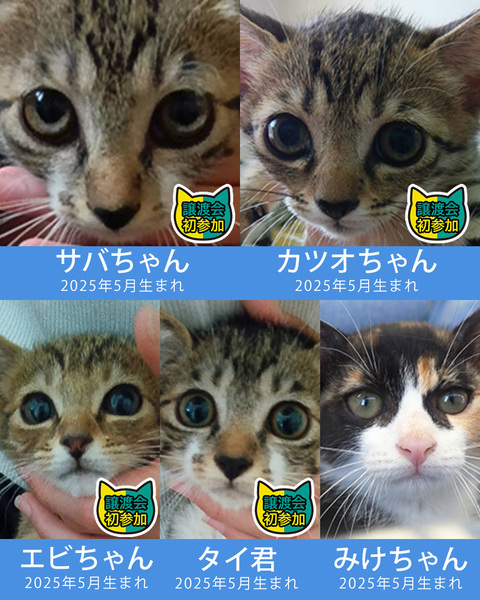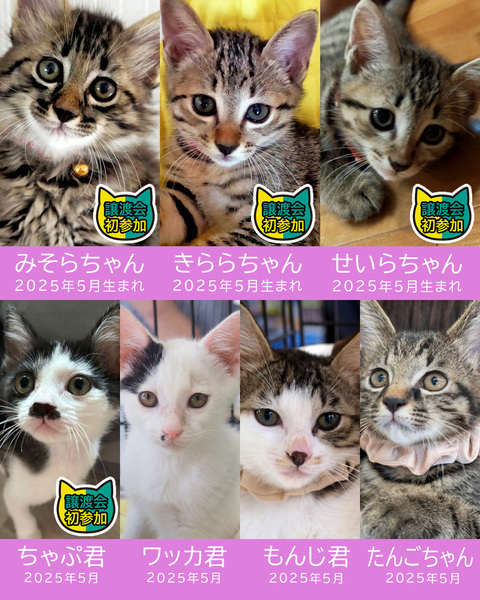 | イベント内容 | !!重要なお知らせ!! 保護している子猫たちに体調不良が多く出ています(´;ω;`) 健康で参加予定になっている子猫も急遽お休みになる場合があります。 また不参加の子猫も体調快復で譲渡会に急遽参加になる場合もあります。 情報更新に対応できない場合がありますので予めご了承ください。 参加猫情報を再掲載します。 子猫・子猫・子猫25匹の子猫まつり第4弾(=^・^=) 落ち着いたでっかい猫を含めて30匹の賑やか譲渡会です♪ 参加猫 http://miyoshineko.sblo.jp/article/191420685.html 〇◎子猫まつり第4弾★みよし市◎〇 ■7月20日(日)10時~15時 ■みよし市カリヨンハウス(みよし市三好丘2-2-1) ※野菜マルシェさんと合同開催 【駐車場について】 子猫の譲渡会は大変混み合います。 会場は無料駐車場が48台分ございますが、他イベントがございますと満車の場合がございます。 しばらくお待ち頂くか、近隣の大型コイン駐車場のご利用、公共交通機関(三好ヶ丘駅から徒歩1分)でのご来場お願いします。 【参加団体】 NPO法人三好ネコの会 https://www.instagram.com/miyoshineko あいち東郷ねこの会 https://www.instagram.com/togoneko 猫暖心 https://www.instagram.com/nekodangonet 【ご来場前に】 ・子猫の譲渡会は大変混み合います。混雑時は入場をお待ち頂く場合があります。 ・猫は先着や申入れの順番ではございません。 ・適正と条件を十分考慮させて頂き、トライアル先は抽選で決まります。 ・当選されたご家庭のみに当日電話連絡を差し上げます。 ・体調不良等で不参加になる猫もございます。 ●子猫譲渡手数料 ワクチン1回接種/1匹20,000円・2匹38,000円 ワクチン2回接種/1匹30,000円・2匹58,000円 ●成猫/オス30,000円・メス35,000円 ※成猫は不妊去勢済、ワクチン済です。 ※個人参加猫、他団体猫は上記手数料ではございません。 <もったいないを保護猫に> ご家庭で余っているフードを譲渡会場でお受け取りできます 買ったけど食べてくれない、飼い猫が亡くなって残ってしまったなど キャットフードドライブにご寄贈をお願いします。 |