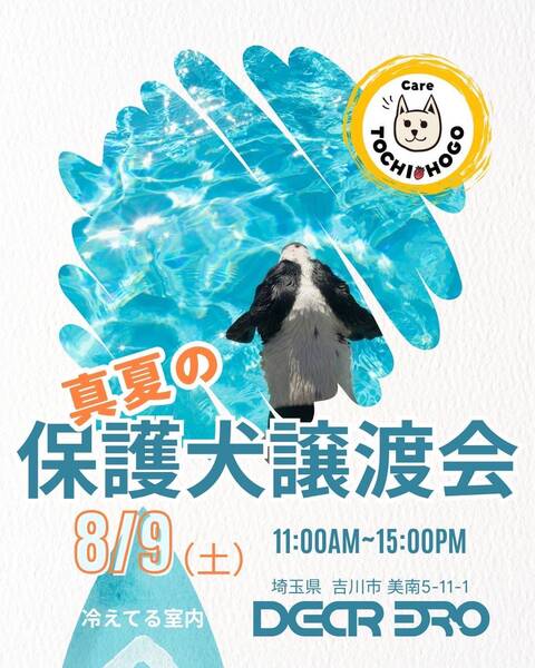 | イベント内容 | 真夏の暑さでも安心!涼しい室内で、保護犬たちが新しい家族との出会いを待っています。 この譲渡会は、以下のような想いをお持ちの方に特におすすめです。 ・新しい家族として犬を迎えたいとお考えの方 ・犬を飼うことを検討しているけれど、どこから迎え入れたら良いか迷っている方 ・社会貢献に関心がある方 ▷いつか犬を迎えたいと考えている方 ▷保護犬を家族に迎えたいと思っている方 大歓迎です! 当日は、経験豊富なボランティアの方々も来場します。 「どんな活動をしているの?」「当日参加犬のこの子についておしえてほしい」など、気になることを直接聞けるチャンスです!初めて犬を飼う方も、安心してご相談いただける場です。 保護犬は、一頭一頭異なる個性を持っています。実際に触れ合い、相性の良い子を見つける絶好の機会です。ぜひこの機会に、個性豊かなカワイイ犬たちに会いにお越しください。 |