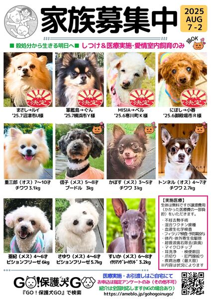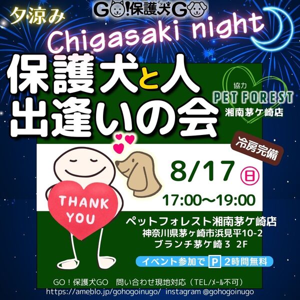| イベント内容 | すぐに一緒にお出かけできる保護犬ならGO!保護犬GOです 8月17日(日)17時~19時 トイレしつけ済、社会性回復済、心のリハビリ済 60歳以上の方もぜひお越しくださいませ |