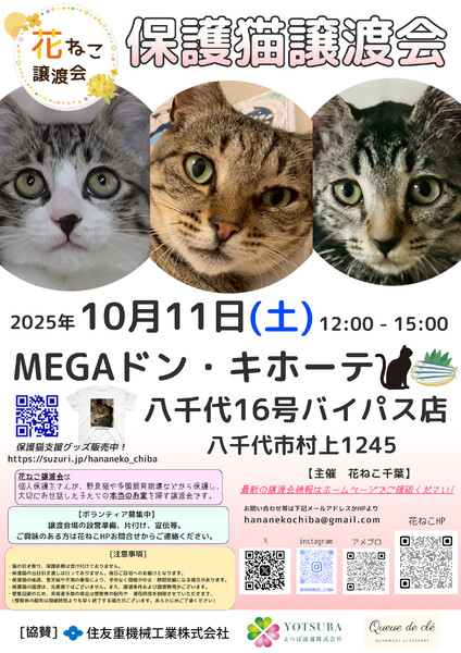 花ねこ譲渡会は、個人保護主さんが保護して大切にお世話した猫の「本当のお家」を探す譲渡会です。
