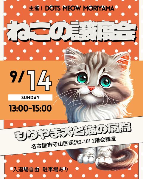 | イベント内容 | ⇦ 保護猫譲渡会(名古屋)はこちら ⬛︎ ね こ の 譲 渡 会 の お 知 ら せ ⬛︎ 日時:2025年9月14日(日) 13:00〜15:00 場所:動物医療センター もりやま犬と猫の病院 (名古屋市守山区深沢2-101 2階会議室) 3ヶ月の子猫から10歳超のシニアまで 個性が爆発している譲渡会です! どんなねこちゃんが合うのか分からない人も ぜひドッツさんの譲渡会に来てみてね。 ライフスタイルや猫の飼育経験の有無、 どんな暮らしをしていきたいかなどを踏まえて 推しの子をご紹介することもできます。 ぜひ保護ねこたちに会いに来てくださいね。 ________________________________________ \ 「保護ねこを応援したい!」皆さまへ / ねこちゃんを迎えてあげられなくても、 いろんな方法で応援することができます。 ①オリジナルグッズの販売をしています。 └ プロフィールにある「ショップ」から購入できます。 ②保護ねこに「ギフト」が贈れます。 └ amazon 保護犬・保護猫支援プログラムに参加中! └ プロフィール欄にあるURLから支援できます。 ③「フォロー」や「いいね!」で応援できます。 └フォロー・いいね・シェア・保存をしてね! └ 私たちにとって大きな応援になっています。 皆さまの小さくて大きなアクションが、 ずっとのおうちとの出会いにつながっていくかも! ぜひフォローしてね! ⇨ 【 @dotsmeowmoriyama 】 ________________________________________ 〈 会場へのお持ち込みギフト(寄付)について 〉 ▪︎ フードやおやつなどの食べものは、 未開封品のもののみとさせていただきます。 ▪︎ おうちで眠っているもので こんなものがあれば、お譲りいただきたいです。 ・トイレットペーパー ・ティッシュペーパー ・ウエットティッシュ ・ハンドソープ ・洗剤(食器用または洗濯用) など 「もったいない」を「ありがとう」へ 保護猫への寄付という形に変えてみませんか? ________________________________________ 【お知らせ①】 「のらねこのにゃんでも相談会」のご予約を 随時受け付けています。 ・にゃんでも相談会は、事前予約が必要です。 ・相談対応エリアは「守山区」です。 ▶ 詳細は、ストーリーズハイライトの 「そーだん会!」からご確認ください。 【お知らせ②】 毎月第2金曜日 10:00~12:00 「喫茶ネコミミ」がオープンしています。 ・サロン形式で予約不要・エリア不問です。 ・野良猫や地域猫の困りごとや悩みごと、 相談したいことなどを気軽に話せます。 ▶ 詳細はストーリーズハイライトの 「喫茶ネコミミ」をご確認ください。 ________________________________________ DOTS MEOW MORIYAMAによる野良猫に関する相談支援事業「のらねこのにゃんでも相談会」および「喫茶ネコミミ」 は、名古屋市社会福祉協議会の地域の支え手応援事業「地域の困りごと解決応援助成事業」(名古屋市福祉基金財源)により、助成を受けて実施しています。 ________________________________________ #保護猫 #保護猫活動 #保護猫譲渡会 #保護猫を家族に #名古屋市動物愛護センター |