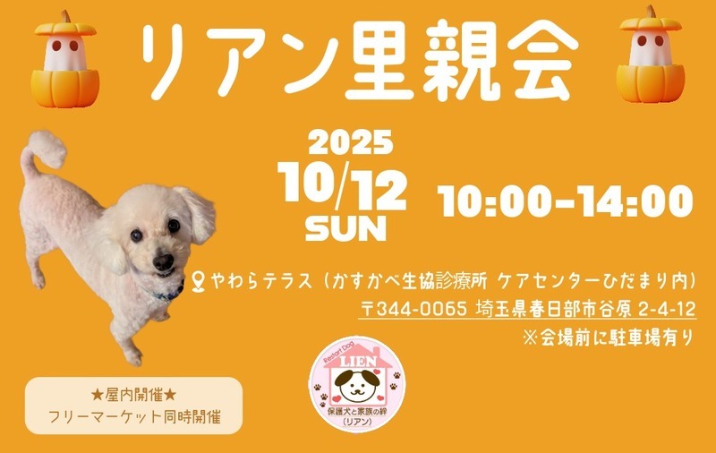 | イベント内容 | 保護犬の譲渡会です。 会場は屋内なので、天候に左右されずにワンコ達と触れ合っていただけます。 参加は無料です。 お目当ての子が決まっておりましたら、リアンHPより予めご予約をいただけますとご案内がスムーズです。 「保護犬ってどんな子達なのかな」 「お迎え予定は決まってないけど話を聞いてみたい」 「とりあえず見てみたい!」 どんなきっかけでも構いません。 是非覗きにいらしてください。 ご来場をお待ちしています! |