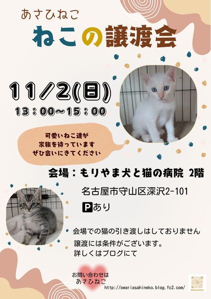 | 開催場所 | 名古屋市守山区深沢2-101, もりやま犬と猫の病院 2F | ||