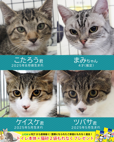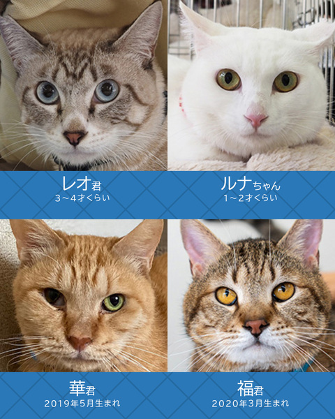 | イベント内容 | ☆☆譲渡会参加メンバー決定☆☆ 2ヵ月、3ヵ月子猫から6ヵ月以上の中猫成猫21匹がパパママ家族探し♪ 子猫中猫多め★成猫少なめです★参加猫はあと数匹増えそうです。 保護猫をお家に迎えませんか? 猫が布団に入ってきていっしょに寝ると幸せですね♪ 【子猫大好き譲渡会★みよし市】 ■11月16日(日)10時~15時 ■みよし市カリヨンハウス(みよし市三好丘2-2-1) ▼参加猫 http://miyoshineko.sblo.jp/article/191540168.html <参加団体> NPO法人三好ネコの会 https://www.instagram.com/miyoshineko あいち東郷ねこの会 https://www.instagram.com/togoneko2 猫暖心 https://www.instagram.com/nekodangonet <ご来場前に> ・混雑時は入場をお待ち頂く場合があります。 ・猫は先着や申入れの順番ではございません。 ・適正と条件を十分考慮させて頂き、トライアル先は抽選で決まります。 ・当選されたご家庭のみに当日電話連絡を差し上げます。 ・体調不良等で不参加になる猫もございます。 ●子猫譲渡手数料 ワクチン1回接種/1匹20,000円・2匹38,000円 ワクチン2回接種/1匹30,000円・2匹58,000円 ●成猫/オス30,000円・メス35,000円 ※成猫は不妊去勢済、ワクチン済です。 ※個人参加猫、他団体猫は上記手数料ではございません。 ■主催:NPO法人三好ネコの会 インスタ、Facebook、HPなどのSNSはこちら https://miyoshi-neko.jp/sns <もったいないを保護猫に> ご家庭で余っているフードを譲渡会場でお受け取りできます 買ったけど食べてくれない、飼い猫が亡くなって残ってしまったなど キャットフードドライブにご寄贈をお願いします。 |