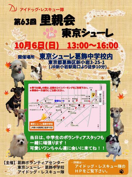 | イベント内容 | 『第63回 里親会in東京シューレ』 今回の里親会は『次世代チームの啓発活動』の一つとして、 里親会の前に、葛飾区内の中高生ボランティアさん達と、東京シューレの有志の生徒さん達が パワーポイントによる授業と保護犬をめぐる現状と私達の活動のお話を行います。 よろしければ、ご自由にご覧になってください。 ◆会場 :東京シューレ葛飾中学校 葛飾区新小岩3-25-1 (JR新小岩駅より徒歩10分) ◆主催 :葛飾ボランティアセンター、東京シューレ葛飾中学校、アイドッグ・レスキュー隊 ◆保護犬をめぐる現状のパワーポイント 11:30~12:10 ※デモンストレーション中の途中入場はできません。また、犬の同伴はご遠慮いただいております。 ◆里親会 13:00~16:00 ・中高生のボランティアさん達が保護犬、保護猫のアピールをします。 ・ミニフリーマーケットもあります。 ※先住犬をお連れの場合、フリーで遊ばせることはできません。また、マナーベルト、おむつの着用をお願い致します。 ◆会場周辺は一方通行の道がありますので、気を付けてお越し下さい。 ◆参加犬は体調等により、変更になる場合があります。 ◆参加犬・猫の詳細はホームページを御覧下さい。 http://aidog.jpn.com 皆様のお越しを心よりお待ちしております。 |