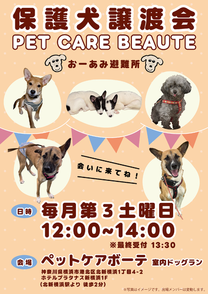 | 開催場所 | 横浜市港北区北新横浜1丁目4-2 PET CARE BEAUTE(ペットケア ボーテ) | ||
