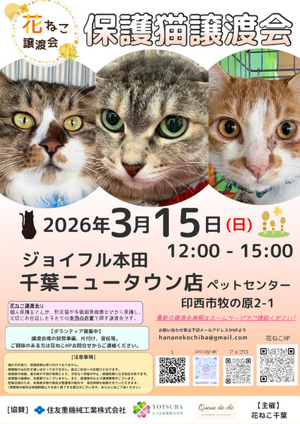 花ねこ譲渡会は、個人保護主さんが保護して大切にお世話した猫の「本当のお家」を探す譲渡会です。